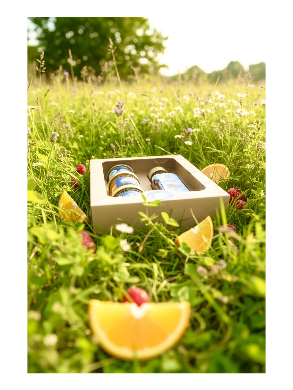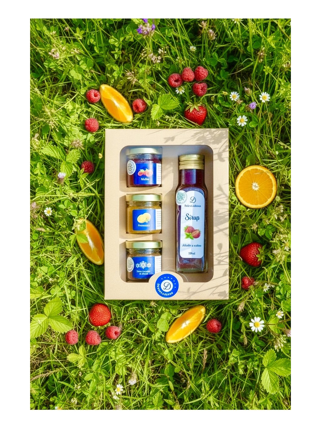 Malý dárek nejen na piknik marmelády, karamel a sirup v degustační krabičce